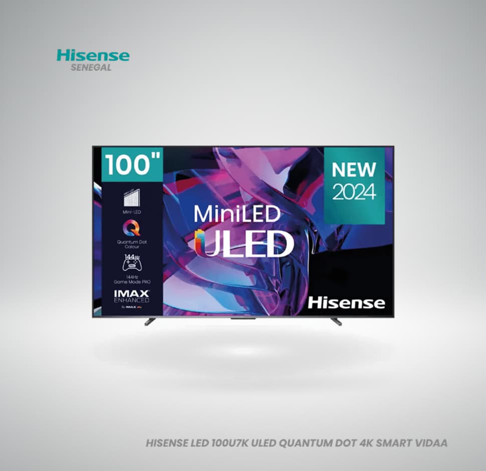 Votre magasin électronique à Dakar est la destination n°1 pour la vente d’électroménager haut de gamme au Sénégal. Le Hisense 100U7K est un équipement maison d’exception que nous vous proposons en achat en ligne au Sénégal. Pour découvrir d’autres modèles, explorez notre section dédiée aux téléviseurs ULED et Mini-LED.