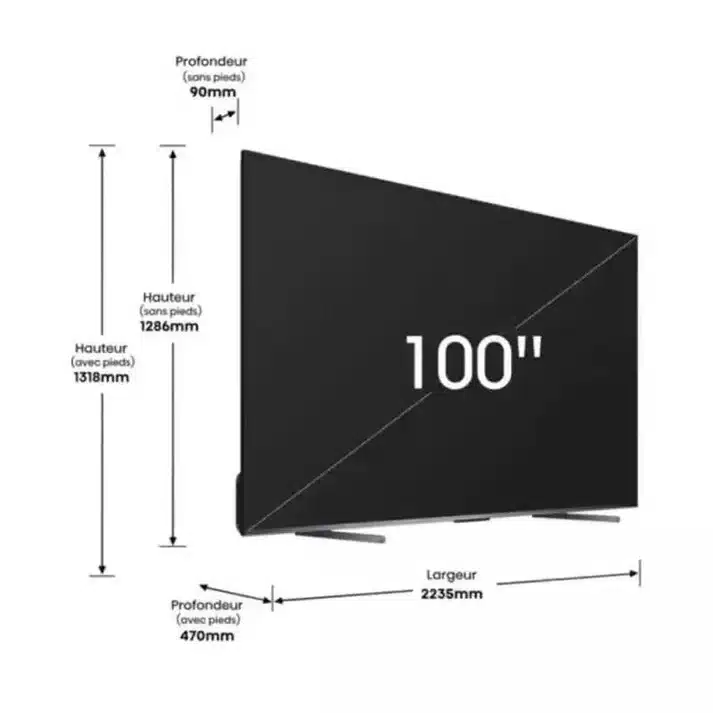 | Taille de l’écran | 100 pouces (254 cm) — L’expérience Cinéma Ultime |
