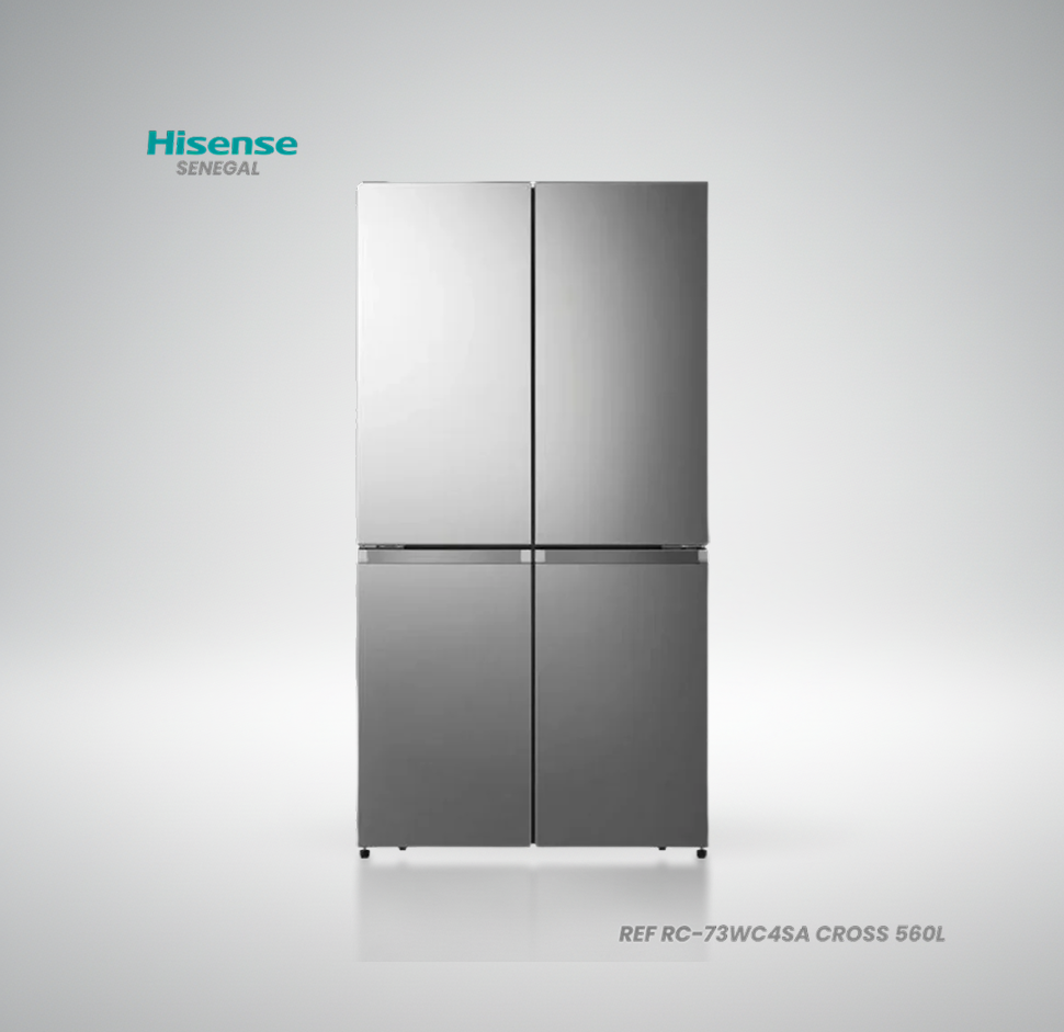 Le Hisense RC-73WC4SA est le réfrigérateur idéal pour les grandes familles et les utilisateurs exigeants en quête d’un volume de stockage exceptionnel. Avec sa capacité massive de 560 litres et son architecture Cross Door (4 portes), il offre une organisation sans précédent pour tous vos produits frais et surgelés. Son design moderne en inox brossé apporte une touche de sophistication immédiate à votre cuisine au Sénégal. Développé par Hisense, ce modèle allie robustesse, élégance et technologies de pointe.